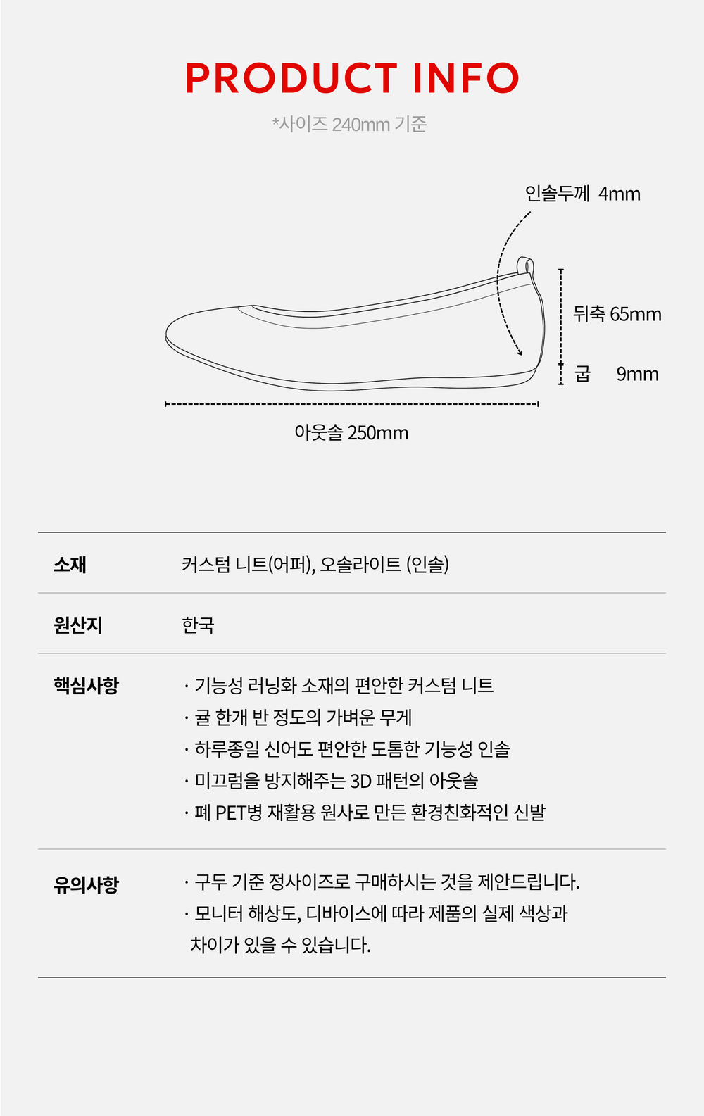 노도니트 플랫은 최신 러닝슈즈에 사용되는 고기능성 니트소재와 성수동 수제화 공정을 결합한 데일리 플랫슈즈입니다.
