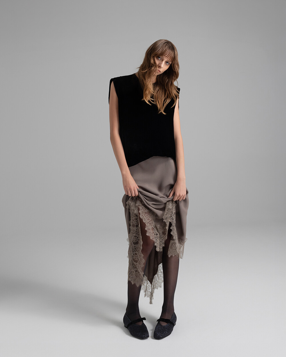 스퀘어플랫 - 벨벳리본 메탈 블랙