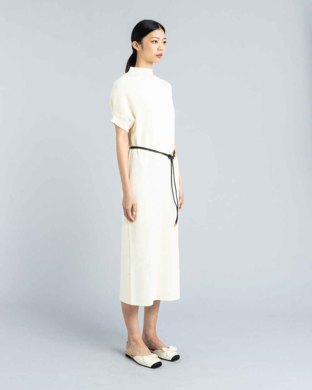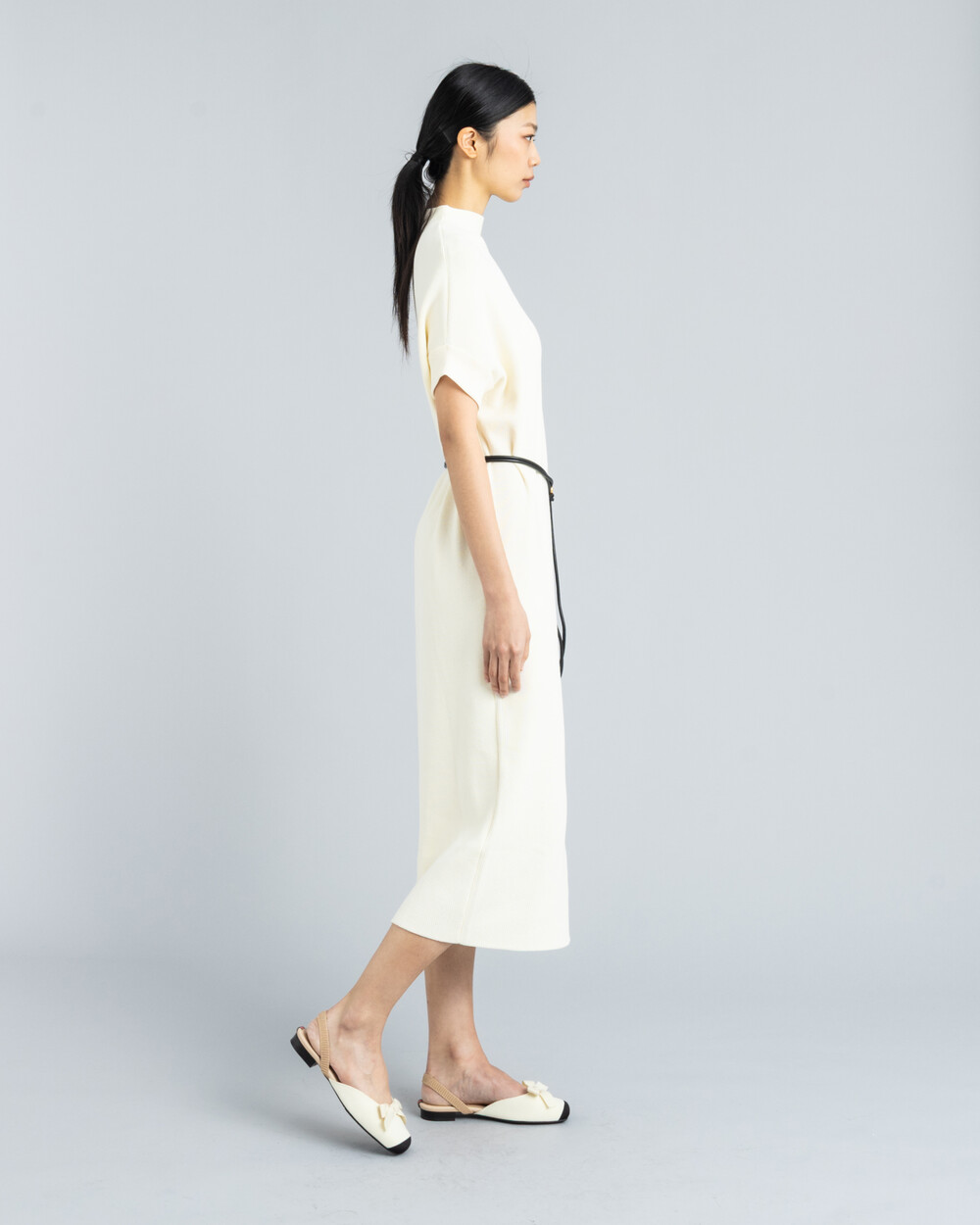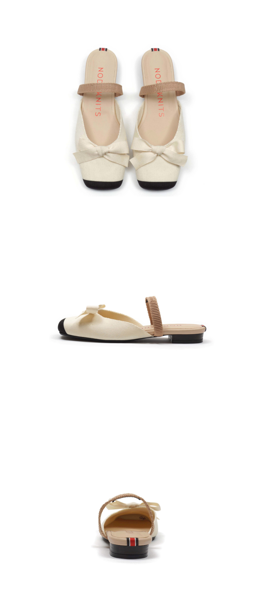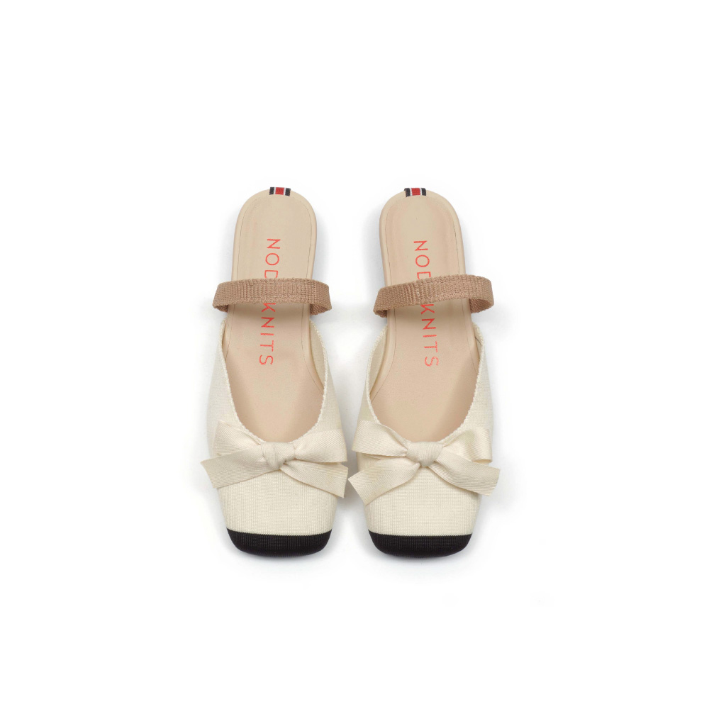 스퀘어 슬링백플랫 - 리본 블랙토 크림