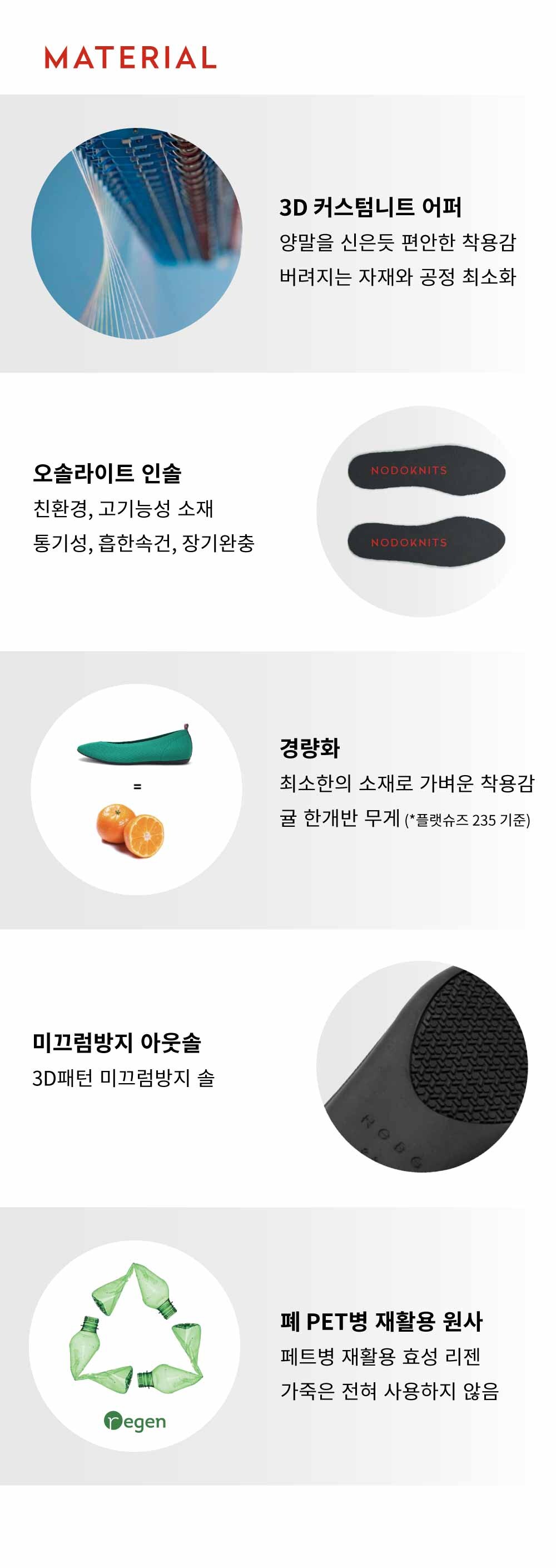 노도니트 플랫은 최신 러닝슈즈에 사용되는 고기능성 니트소재와 성수동 수제화 공정을 결합한 데일리 플랫슈즈입니다.